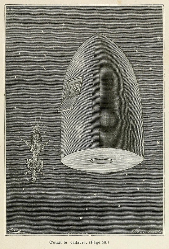 In Jules Verne's early science fiction classic From the Earth to the Moon, readers had to wait five years to learn the fate of the story's heroes. The continuation of their adventure was enhanced by a series of wood engravings, arguably the first to depict space travel on a scientific basis. These illustrations were created by French artists Émile-Antoine Bayard and Alphonse de Neuville, with Bayard's space-related contributions highlighted in this post. Despite the brilliance of these space illustrations, Bayard is best known today for his sketch of the sad-eyed Cosette sweeping, which he created for the 1865 edition of Victor Hugo’s Les Miserables. This image has become iconic, particularly in the promotion of the popular musical Les Misérables.