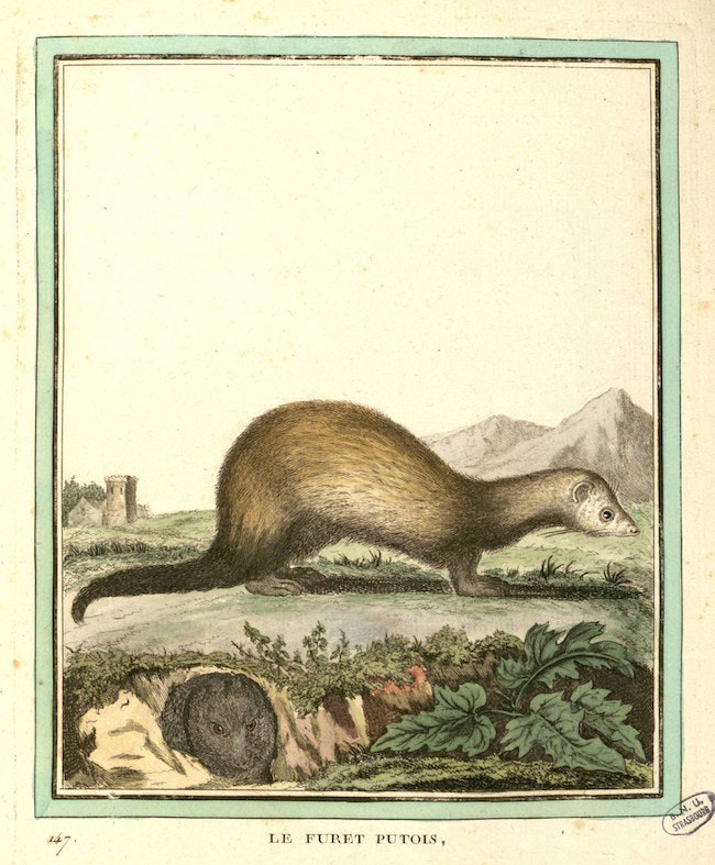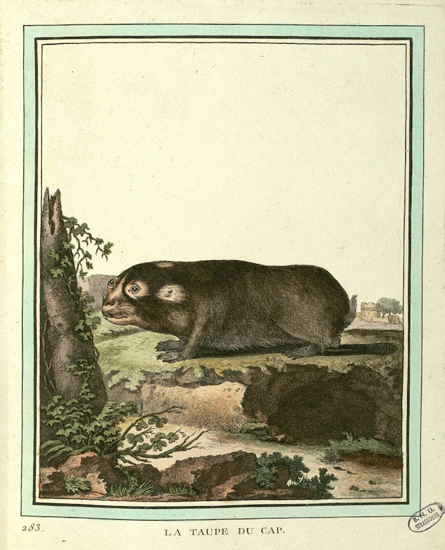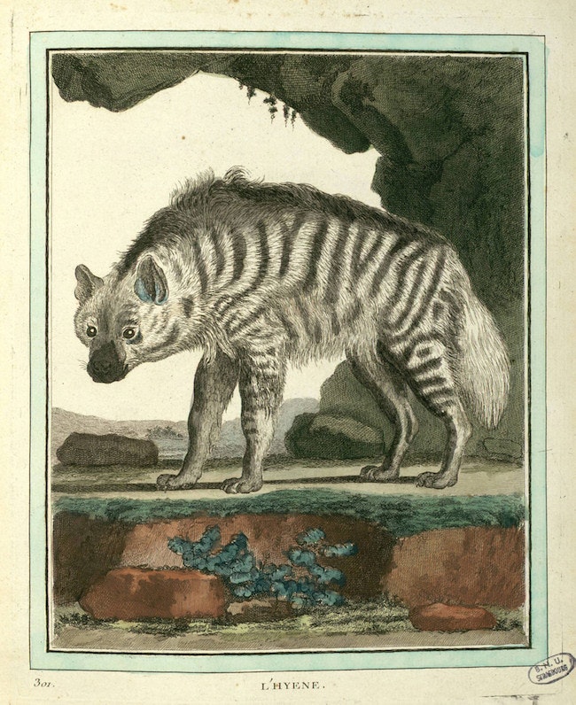 All of de Sève’s illustrations include identifying captions, except for one, listed simply as "l’animal anonyme" (the unidentified animal). Most naturalists later agreed it represented a fennec fox, although some suggested a bat-eared fox. One thing is certain: de Sève had a penchant for drawing large ears.