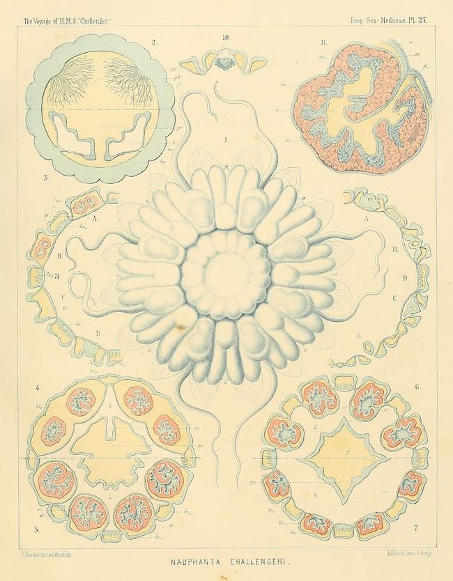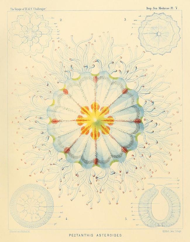 Haeckel’s grief led him to a period of intense work, ultimately producing significant scientific works, including a two-volume monograph on evolution and morphology. His fascination with medusae continued, and he named new species, including Desmonema annasethe, after Anna. Haeckel’s System of Medusae (1879–81) became one of his most renowned works, and his illustrations of jellyfish became iconic, featuring in his later book Art Forms in Nature.