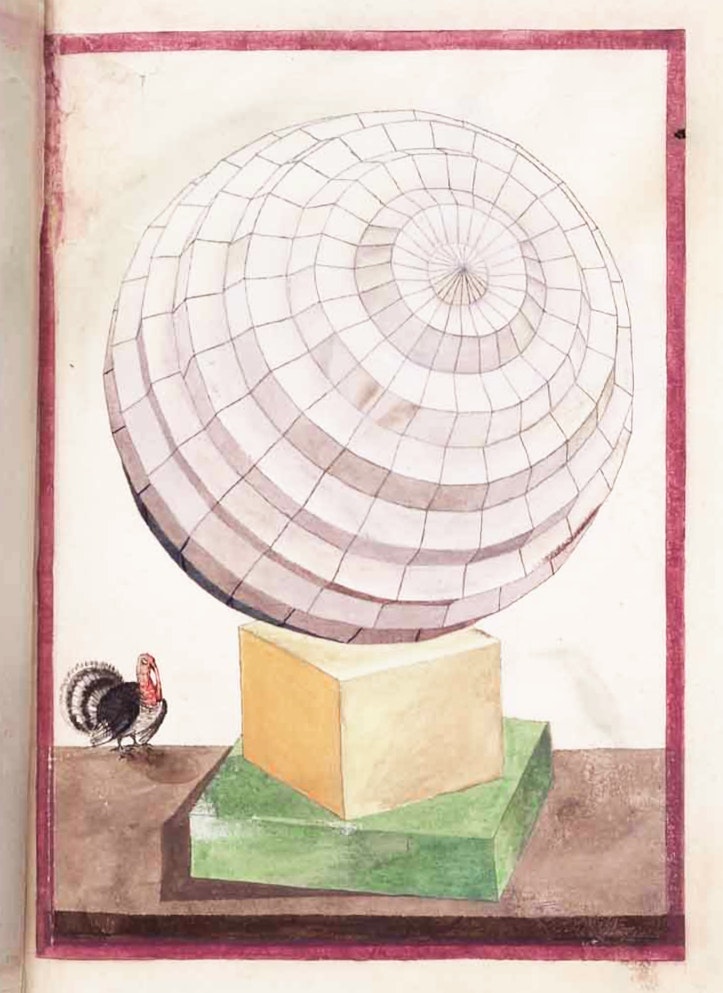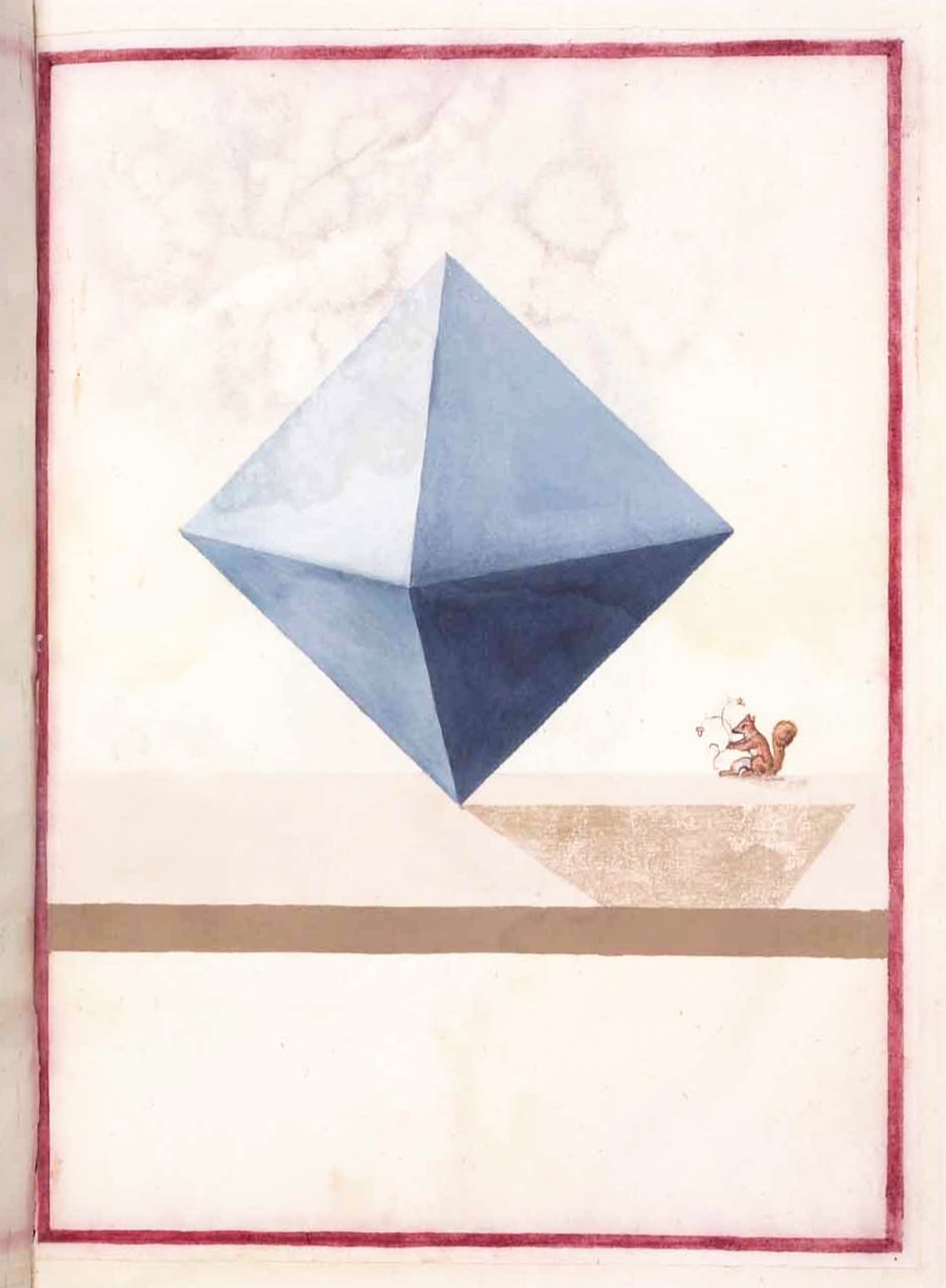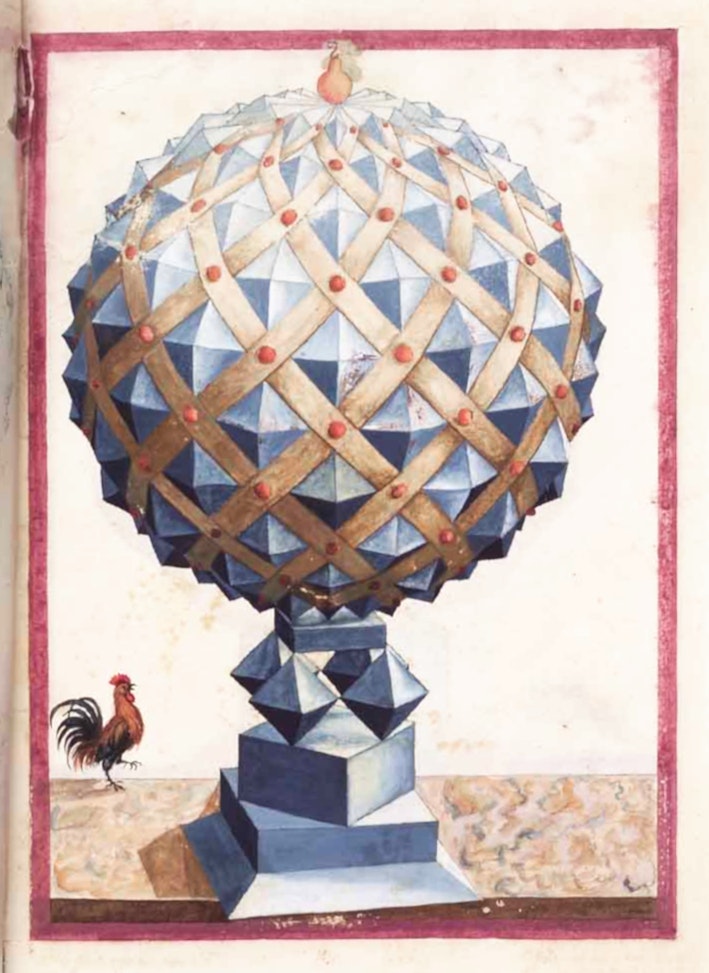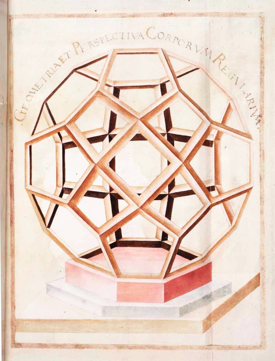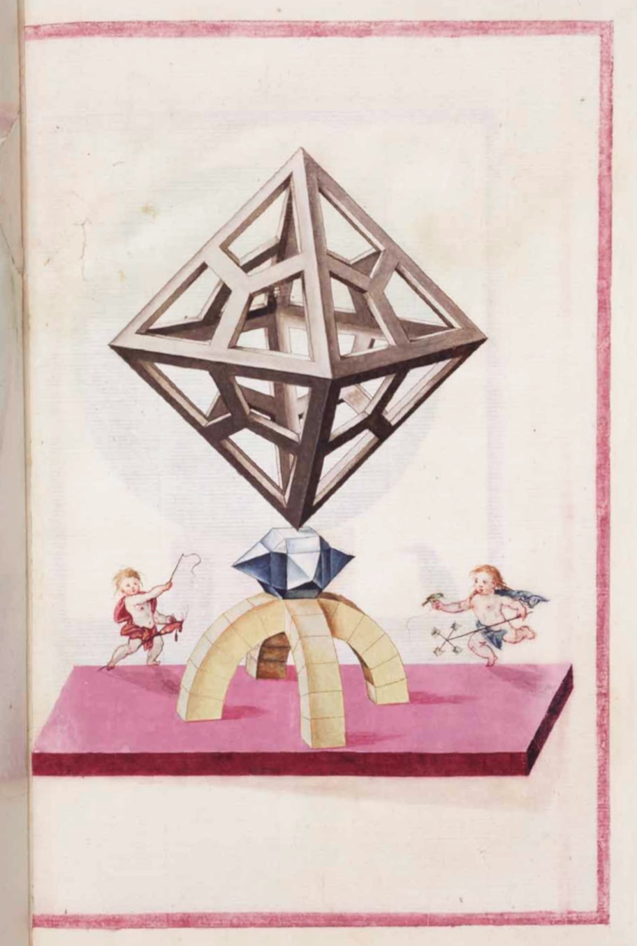 Solid Objects is a mysterious 16th-century watercolor manuscript of geometric and perspective drawings, housed in the Herzog August Bibliothek. With no known author, title page, or commentary, the manuscript offers a visually striking sequence of increasingly complex shapes — from pyramids and cubes to compound polyhedra and surreal arrangements. While its origins remain unclear, its style links it to the work of Jamnitzer, Dürer, and other Renaissance figures captivated by geometry and the divine order it was believed to reveal.